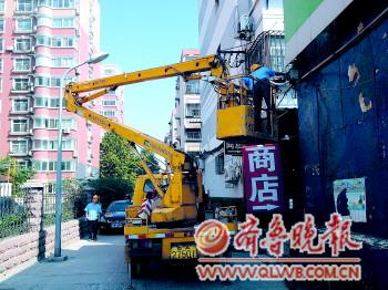 | 路灯管理处工作人员在检查铁路桥附近的路灯电脑控制箱。 见习记者 陈熹 摄 |