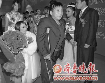 11对残疾人 集体结连理 9月20日,在国际聋人节前夕,11对残疾人在济南市残联主办的集体婚礼上喜结连理。济南市残联工作人员介绍,最近几年出现了残疾人结婚“年轻化”趋势,反映了整个社会对弱势群体观念的转变。 本报记者 张榕博 摄