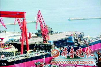 2005年4月26日,“瓦良格”被拖进大连造船厂第一工场2003年竣工的30万吨级船坞。