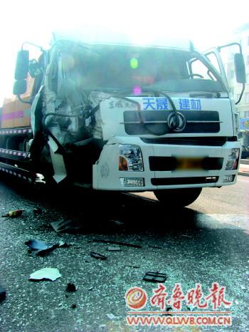 一个刹车失灵 25日上午7点50分左右,莱山区盛泉东路速8酒店附近发生一起车祸。一辆车载式混凝土车因刹车系统出现问题,猛打方向盘但还是和工程运输车发生了追尾。车载式混凝土车受损严重,车头部分面目全非。据了解,事故中没有人员受伤,车载式混凝土车司机负事故全部责任。 见习记者 王永军 摄影报道 一个看手机走神 25日上午9点50分,莱山区滨海中路与渔人码头路口发生一起追尾事故,一长安面包车司机只因看了一下手机,把正在等待红灯的本田SUV顶出去两三米。两车受损都比较严重,面包车司机手臂受伤。据了解,面包车司机负事故全部责任。 见习记者 王永军 记者 钟建军 摄影报道