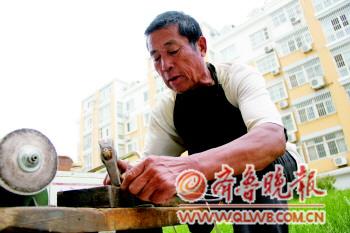 走街串巷的磨刀艺人孙长峰,有16年的磨刀经验,游走在滨州的大街小巷磨剪子磨刀8年,并且免费给居民维修剪刀剃头刀、传授剪子和刀的保养技巧,也把自己所知的养生知识传递给每一个相识的人。闲暇的时候,还能自为居民展示口琴、笛子表演。 刀磨得亮,曲吹得好 9月22日下午,裕华苑小区里传出了“磨剪子磨刀”的吆喝声,接着就是极少听到的砂轮机转动打磨刀具的声音。过了一会,小区里又安静下来,忽然传出了悠悠的口琴声。好奇的居民打开窗户,有的拿着菜刀三三两两地下了楼。 这位走街串巷的磨刀艺人叫孙长峰,日照人,今年68岁,从事磨刀行业16年,游走在滨州的大街小巷也有8年的时间。一个长条板凳、两块抹布、一个手摇砂轮机、一把小锤子、磨刀石和几件简单的辅助工具,就是孙长峰的“行头”。 孙长峰告诉记者,因为磨剪子磨刀的活要求必须一定的时间,所以一年也转不完滨州的大小社区和市场,“但只要保养得好,磨完的刀和剪子足可以用上两年。”孙长峰说着把刚磨完的刀往头上一卡,“刺拉拉”剃下一块头发。“你看,磨完的刀子有这么快!”围观的居民都叫起好来。 陆续来了一拨又一拨磨刀的居民后,小区一下又安静了下来,这时,孙长峰从电动三轮车的口袋里拿出自己的口琴,在毛巾上非常娴熟地擦了两下,然后非常专注地吹起来,边吹还边摆动着节奏。 孙长峰说,平时他不仅带着口琴也会带着笛子,“闲下来就吹一曲,那是真高兴。” 只做“懒人”的生意 给居民磨完刀后,孙长峰一般还要嘱咐居民如何保养,“不能用刀锋刮着菜板推菜,这样刀就毁了。要抬起刀来推。”孙长峰说,他磨完的刀在两年内如果不快了,可以自己稍微磨一下,还能接着用好久,不用再找磨刀工。“如果遇到不用磨的刀,我就会免费帮他们打磨一下,没必要花钱的嘛。” 因家在西区住,孙长峰大部门都在西区干活,考虑到现在大部分居民都用竹子菜板,他就开始劝居民换成柳木或其他材质的菜板,“竹子材质的容易毁刀,最好的是东北的椴木。”在孙长峰的影响下,西区很多小区的居民都开始将菜板换成杨木或柳木的。 对刀的保养常识,孙长峰一下午至少重复了五六遍,有些居民就说,“你告诉他们干啥,如果刀都保养好了,你咋赚钱?”孙长峰笑着说,“传授这些东西也算是我的职业道道,滨州那么多的人,根本不用担心自己没有生意做。我倒可以做‘懒人’的生意,那些不愿花时间保养的,多花些钱买教训。” 和居民分享知识心得 “绿豆能败火,但是只有在绿豆开锅五六分钟的时候喝才有效。”孙长峰平时看报或者看书的时候,非常注意养生的常识,车上还放着一本养生大全的书籍,遇到居民来探讨养生的问题,他就将自己的知识跟他们分享一下。 “第31版就是如何防高血压的,你来看看吧。”孙长峰笑着说,因为得知自己身边的人有高血压、心脏病,他就非常注意报纸上的广告,看到有些疗效明显的治疗方法,他就会将报纸好好地保存起来,遇到那些患病的人就跟他们说说,遇到懂医学的行家也向他们求证一下真伪。