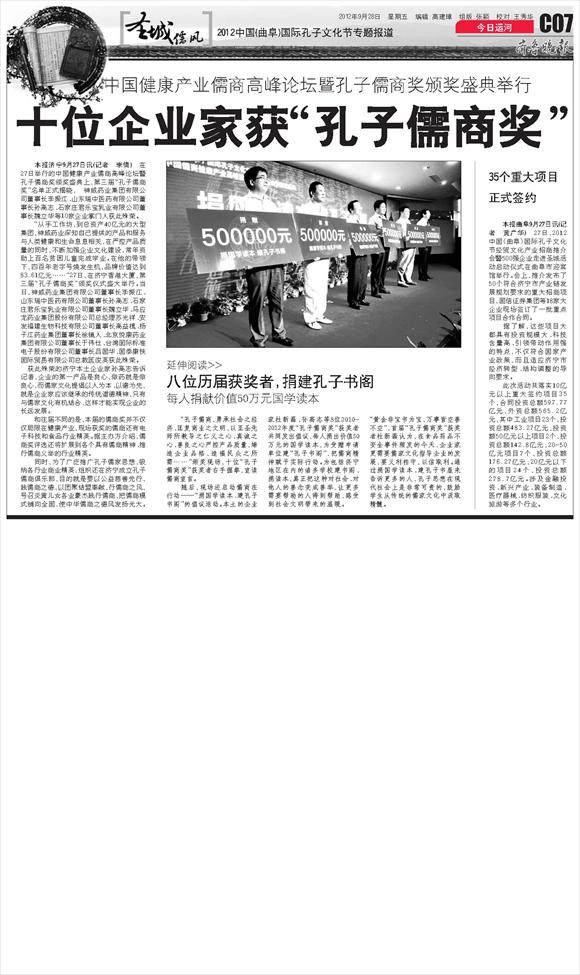 十位企业家获“孔子儒商奖”