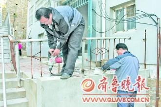 近日有市民反映,在环翠区菊花顶东区,一栋居民楼门前的高台上没有安装防护栏,并且已有老人和小孩在此摔伤。为解决安全隐患,威海市市级机关物业服务中心义务给居民安装扶手栏杆,保证民居出行安全。