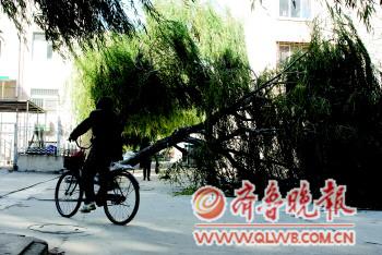 本报11月13日讯(记者 李沙娜) 13日,家住文汇小区的韩先生向本报反映,在小区6号楼与7号楼之间的路上横躺着一棵大树,阻碍了市民的出入。据介绍,这棵大树是11日那天,被大风刮倒了,至今没有人来处理。随即,记者联系到该小区的物业及居委会,相关负责人表示正在积极处理。 13日,记者在该小区看到,被风刮倒的大柳树直径近30厘米,整个树干把6号楼与7号楼之间宽约6米的南北小路堵得严严实实。据附近的居民介绍,这棵大树的树龄已有十几年了,但具体哪个部门负责谁也不知道。被风吹倒的大树让居民只能绕路而行。上学经过这里的学生懒得绕路,就直接从树根处跳过去,一位从此处经过的小学生告诉记者:“前天放学后就看见大树横躺在路中央了,来回的车辆都没法从这里经过,骑自行车或者电动车的叔叔阿姨也都要绕到其他楼道之间过去。” 随后,记者联系到了文汇小区的物业,张经理说,昨天已经跟园林处、林业局等部门联系过了,虽然确定这棵大树不能再在原地栽种了,但还不知道要搬运到哪里,所以一直没有解决。 业主委员会的王主任也说,从接到大树被刮倒的消息后就一直在协商,跟相关部门沟通,尽快解决居民的出行问题,但一直没有找到合适的办法。王主任说:“业主委员会的几个人想自己把大树抬走,但树太沉,人工根本搬不动,我们也在找相关的部门来解决这件事,希望能尽快解决问题。”