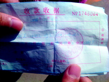 ▲六年前购房交款收据中,五千多元费用中包含了天然气开户费。 本报记者 任志方 摄