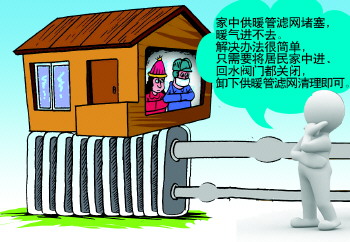 热力公司技术人员称,将家中进、回水阀门关闭,清理供暖管滤网即可