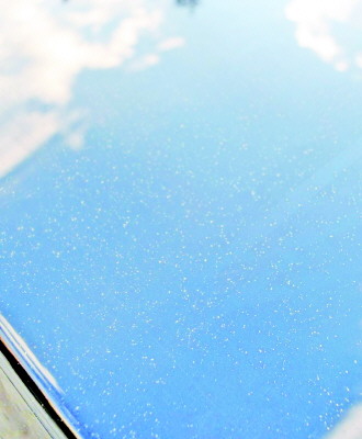 17日早,刘先生发现车体各处黑漆面上均匀密布着一片乳黄色的小颗粒,跟麻脸似的。“这两天没下雨啊?”刘先生找来擦车工具擦拭车顶,小颗粒竟一点没有减少。刘先生用指甲刮下小颗粒,车漆上仍残留着一个小白点。同小区的10余辆轿车都遭受这种小颗粒不同程度的侵袭。