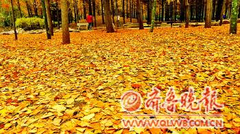 11月23日,泉城公园的银杏树落叶。经历了又一场寒潮后,济南的树木迎来大落叶时期,街头巷尾厚厚的落叶随处可见,平添了一分初冬的美丽。 本报记者 周青先 摄影报道