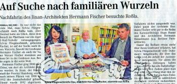 本报11月25日讯(记者 董从哲 马云云) “我一直觉得,济南也是我的一个家。”经过数月来对济南的了解,济南老火车站的设计者德国人赫尔曼·费舍尔(Hermman fisher)的孙女西维亚·弗里德里希米德(Sylvia Fliegenschmid)近日决定来济南,看看爷爷和奶奶当年工作和生活过的这座城市。 今年5月,数张约有一个世纪历史的老照片被从万里之外的德国传到本报编辑部。照片的邮寄人就是济南老火车站的设计者的赫尔曼·费舍尔的孙女西维亚。她一直在关注着济南老火车站要复建的消息,希望能为复建提供力所能及的帮助。本报记者与西维亚保持着电子邮件和电话联系,双方互通了数百封电子邮件。 西维亚对爷爷在济南的工作怀有强烈的自豪感,对爷爷和奶奶当年生活和工作的济南深有感情。她在电子邮件中数次引用父亲和爷爷的回忆,讲述在她眼里那个遥远而温馨的济南。“我觉得济南也是我的家。” 为了推动老火车站复建,她和丈夫四处奔波,遍寻各大德国海外建筑博物馆、建筑协会图书馆等地,希望找到当年济南市被拆除的那座老火车站的原图纸。虽然一直没有进展,她一直没有放弃。 当她得知知名收藏和文化界人士徐国卫先生收藏有该建筑的正面绘图后,专门向本报记者要去了关于此事的报道和图片,为本报记者翻译图纸下面的署名等等。她认为,这张图纸很重要,相信即使没有找到原图,聪明的中国人也能复建这座建筑。 西维亚告诉记者,她准备到济南来看看,时间基本定在12月初。她对这次旅行抱有很深的期待,希望更深地了解济南。 “为了纪念Hermman fisher,我在coswig的老家筹建了一个小型博览馆,收藏爷爷和父亲在济南生活和工作的家族文物。关于我的活动,也引起了当地媒体的关注。电视台和报纸都给予了报道,在这里,很多人关注着济南,关注着济南的那座老建筑。”她还向记者传来了一张当地媒体报道她热心复建工作的照片(如上图)。 这次来济南,她将带来大量的关于赫尔曼·费舍尔先生的一手资料、图片和回忆文字。这些珍贵的家族文物,她表示很愿意在济南进行展示。