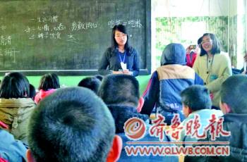 近日,济南大学的30余名志愿者,来到济南南部高而出泉小学,开展冬季安全卫生教育和音体美课程的义教活动。 通讯员 冷冰心 摄