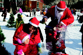 为迎接圣诞节,金象山滑雪场做了充分的准备,推出各种别出心裁的活动吸引游客的眼球。圣诞节总是与圣诞树、圣诞老人和驯鹿拉雪橇分不开,金象山巧妙利用这些圣诞元素,打造出别具风味的“洋节”味道:一进金象山滑雪场,就洋溢着浓浓的圣诞气氛,炫彩的圣诞树林,守候在门口的圣诞老人,闪烁的彩灯……圣诞的氛围浓郁而热烈。金象山滑雪场到处都挂着圣诞礼物,翠色欲滴的圣诞树披上了节日的盛装,环绕着彩灯勾勒出的雪人、驯鹿和天使,迷人极了!大家围成一圈唱歌跳舞、尽情欢乐,孩子们的脸上挂着开心的笑容,欢乐的笑声、嬉闹声在金象山滑雪场久久回荡。绚烂精彩的花车缓缓游行,身穿圣诞服装的表演人员边舞边走,小朋友们想要近距离接触圣诞老人的梦想变得触手可及。