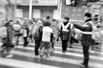 18日,民警在学校周边指挥交通。 图片由通讯员提供