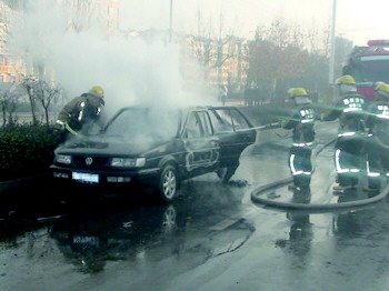 17日8时59分,宁津县阳光大街盐百对面一辆捷达轿车突然发生火灾,宁津消防官兵迅速出动两部消防车,经过10分钟的奋力扑救,大火被成功扑灭,但该车驾驶室已被烧得面目全非。