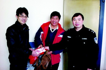 失主王先生对张兴宝(中)连表谢意。(图片由警方提供)