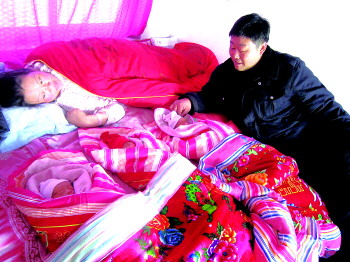 ◤张崇先夫妇望着三个刚出生的孩子,高兴而又发愁。