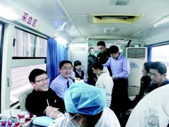 受气温下降等因素影响,枣庄市中心血站血液库存骤然减少。17日,38名公安干警冒着严寒捋袖,集体献血12400毫升,暂时缓解了血库告急的难题。 本报通讯员 彭宪玲 黄云瑞 本报记者 白雪岩 摄影报道