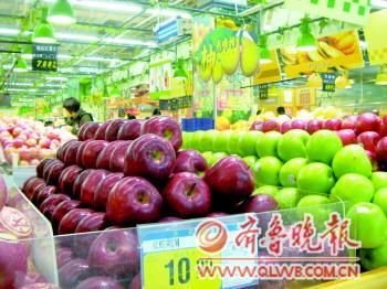 | ◤市区一家超市的“平安果”专区,苹果大都标价一个10元。 本报见习记者 由淑敏 摄 |