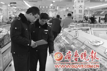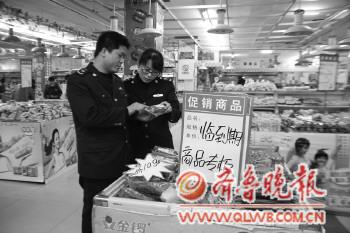 近日,禹城工商部门对超市内摆放的“临界食品”销售专区进行检查。 本报通讯员 李吉华 摄影报道