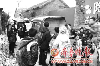 | 交警查处“黑校车”,并将学生安全送达学校。 |