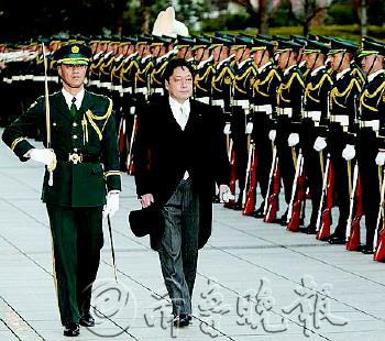 | 27日,小野寺防卫大臣在就职仪式上检阅自卫队仪仗队。 |