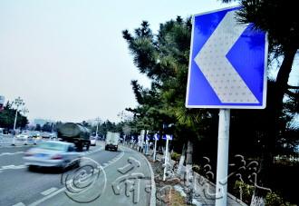 28日,在海滨北路幸福公园南侧,21个线形诱导标“上岗”。交警介绍,此处是弯道,夜晚易发生事故,诱导标可使司机提高警觉。 本报见习记者 赵辉 摄影报道