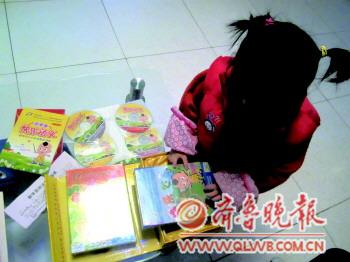 | 一名孩子正在翻看买来的资料。 记者 侯艳艳 摄 |