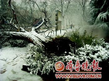 29日上午11时许,奎文区园林局工作人员将大树全部清理完毕。据园林局工作人员介绍,这棵国槐倒了的主要原因是因为大树下面设有暖气管道,管道长期排出的热气已把树根蒸烂,再加上连日的雨雪天气,土壤已经被雨水泡得非常松软,再加上29日早上的大风天气,才使大树倒下。