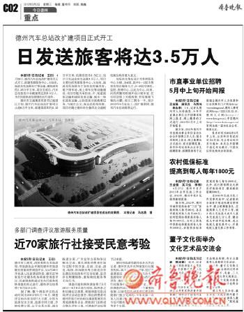 4月29日,德州汽车总站改扩建项目正式开工,新建售票服务中心、主站房、旅游及机场大巴候车厅等设施,建筑面积约2.25万平方米。项目完成后,汽车总站旅客日承载量将达到3.5万人,为市民提供更加便捷的出行条件。