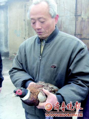 28日上午,在菏泽市政府第二家属区,一只大鸟飞入了张金合老人家院子里。张金合老人将其捉住,经林业部门鉴定,这只大鸟是一只野山鸡,学名“环颈雉”,属于省重点保护动物。