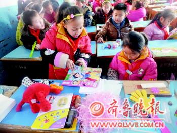 在元旦来临之际,市中区光明路小学三年级四班举行了一场“爱心交换暖寒冬”的活动。在这次活动中,学生将自己的旧书或玩具拿出来,并寻找自己想要的物品进行交换。学生当场成功交易八十多笔。这次活动的开展既让学生体会到分享的乐趣,也提高了学生的低碳环保意识。图为小学生们在展示自己带来的物品,并希望有同学愿意进行交换。 本报记者 杨霄 本报通讯员 张晓艳 摄影报道