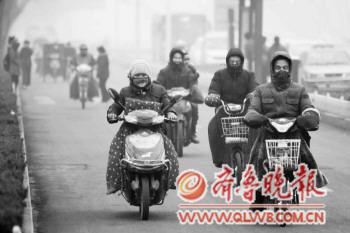 ▲14日,不少市民戴上了口罩在大雾中行走。 本报记者 王鑫 摄