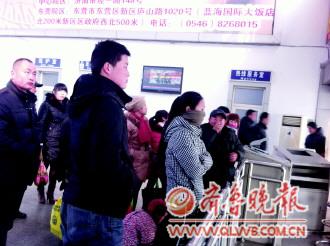 | 枣庄汽车总站,旅客在焦急地等待检票。