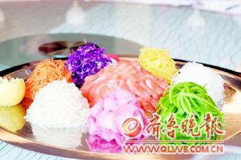捞生。 近日,城阳宝龙福朋喜来登酒店聚味中餐厅推出新春贺年菜单,市民可以品尝新添金盆满“财”、年年有余齐“捞生”等美味的客家菜及东南亚菜品,感受不一样的春节。 盆菜(又名大盆菜),源自宋代,是客家菜的菜式,至今已有几百年的历史,又有“皇帝菜”之称。酒店厨师团队经过精心的煎、炸、烧、煮、焖、卤后,再层层装盆而成,吃的时候,一层一层吃下去,汁液交融,味道馥郁而香浓,令人大有渐入佳景之快。新年之际,与您家人及朋友一同分享金盆满“财”,寓意着新年家庭团圆,福贵盈门,鹏程万里。 捞生又名鱼生(广东话Yee Sang),盛行于马来西亚、东南亚及我国的闽粤台地区。通过吃捞生来讨个好兆头,吃捞生讲究挑起的鱼生越高,意味着来年能步步高升,美满富足。捞生这道菜品主要原材料是以三文鱼为主(也可选择鲍鱼、海螺和海蜇任意一种为主料),被放到菜的顶部,再配以红姜片、水果及各种各样的蔬菜。七彩缤纷的配菜淋上特制的酱汁、花生碎及芝麻,色泽诱人,味美可口成就了风味独特的鱼生。捞鱼生的时候,喊一句:“捞起,捞起,捞到风生水起,一年好过一年”,在此期间相信您及您的家人可感受到青岛城阳宝龙福朋酒店带给您不一样的春节。 据酒店相关负责人介绍,城阳宝龙福朋喜来登酒店从原料采购、加工到制作过程中都十分重视食品安全。选购有机蔬菜,不使用味精、任何食品添加剂等等,让市民们吃得放心。