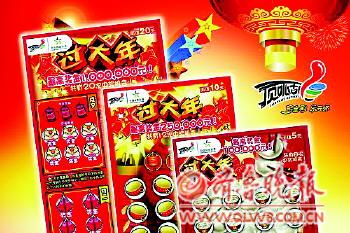 不知不觉中,春节的脚步越来越近了,年味愈来愈浓。今年春节,朋友们如果想让自己的过年方式更充实更有趣一些,不妨让体彩顶呱刮陪您过个快乐年!顶呱刮沿袭以往贺岁传统,再次推出新票种为广大彩友助兴。据悉,顶呱刮迎新春票“过大年”共分3种票面,囊括了5元、10元和20元的3个面值,三种玩法都生动有趣。 “过大年”5元票共有8次中奖机会,头奖10万元。刮开覆盖膜,如果出现“筷子”标志,即中得该标志下方所示的金额;如果出现“铜钱”标志,即中得该标志下方所示金额的两倍。兼中兼得。 “过大年”10元票共有12次中奖机会,头奖25万元。刮开覆盖膜,如果你的号码中的任意一个号码与中奖号码之一相同,即中得该号码下方所示的金额;如果出现“鞭炮”标志,即中得刮开区内所示的12个金额之和。兼中兼得。 “过大年”20元票共有20次中奖机会,头奖100万元,分4个刮奖区。刮奖区除夕:刮开覆盖膜,如果你的号码中的任意一个号码与中奖号码之一相同,即中得该号码下方所示的金额。刮奖区初一:刮开覆盖膜,如果在任意一场游戏中出现两个相同的标志,即中得该场游戏右方所示的金额。刮奖区初二:刮开覆盖膜,如果出现“葫芦”标志,即中得该标志下方所示的金额;如果出现“禄”标志,即中得该标志下方所示金额的两倍。刮奖区初三:刮开覆盖膜,如果你的符号中的任意一个符号与中奖符号之一相同,即中得该符号下方所示的金额。兼中兼得。