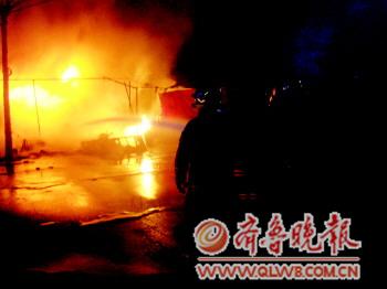16日凌晨3时左右,张店莲池医院西侧小摊着火,引燃旁边五金店,路边2个液化气罐也剧烈燃烧。赶到现场的市消防支队特勤一中队立刻出水压制火势,由1名战士迅速拎起液化气罐并提往安全地点。经过2个小时的努力,火被扑灭。