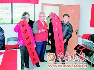 日前,环翠楼街道办事处义工协会组、环翠区教育局书画协会以及部分中小学的师生,来到南山、同德、杏花村、塔山、塔中、东北村等社区,为百余家居民写义务春联,早早送去新春的祝福本报记者 李彦慧 摄影报道