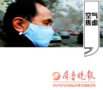 | ▲29日,济南笼罩在雾霾中,市民戴口罩出行。 本报记者 陈文进 摄 |