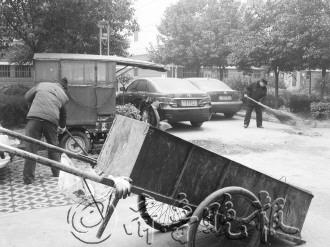 | 服务小组为了省钱,自己动手打扫小区卫生。 本报记者 甘倩茹 摄 |