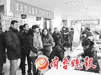 | 18日,在滨州举行的开年招聘会上,众多企业和应聘者正在进行双向选择。 本报记者 王泽云 摄 |