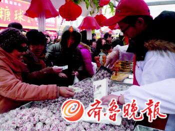本报记者 蓝娜娜 18日,市民翘首以盼的萝卜·元宵·糖球会正式拉开帷幕。其中,萝卜雕刻、糖艺展示、面塑泥塑等特色项目给新春增添不少民俗风味,而数十个品种的糖球、青脆爽口的萝卜也受到了市民青睐。据了解,18日当天,赶会的游客达到了43.5万人次,而来自各地的大萝卜更是创纪录地卖出了95吨。 开幕式,雕萝卜、秀糖艺 18日10时30分,“岛城新春第一节”2013年青岛萝卜·元宵·糖球会正式开幕。在开幕式上,开场舞《武林雄风》、《锁麟囊》、《苏三起解》、黄梅戏等戏曲表演以及其他歌舞表演吸引了大量市民驻足观看。同时,今年还一改往年市、区领导启动的惯例,而是由7位不同工作领域的市民代表拉开青岛萝卜·元宵·糖球会的大幕。 与开幕式现场火爆的场景一样,2013年青岛萝卜会·元宵山会《祥龙迎春》全国萝卜艺术雕刻大赛现场也围满了人。赛场上,从各地赶来参赛的选手将萝卜雕刻成栩栩如生的龙、凤凰、鱼等形象,并通过各种萝卜的拼搭,使整个雕刻作品更有立体感和形象感。 “我的这个作品叫鲤鱼跃龙门,是由红萝卜、青萝卜、胡萝卜、南瓜、法国香芹等原料组合拼接而成,雕了两天时间。”来自青岛烹饪学校、去年曾获雕刻大赛金奖的贺正说。 记者注意到,与往年雕刻大赛现场只有萝卜雕刻和面塑作品不同,今年雕刻比赛的评选首次增添了糖艺项目。选手用砂糖、艾素糖等为原料,通过高温熬制后捏制而成。比赛现场,两只由糖加色、捏制的孔雀作品吸引众多摄影爱好者拍照。 “我是第一次参加萝卜会的雕刻大赛,所以很用心地准备,这个孔雀糖艺作品用了三天时间。”25岁的李高鹏说。 萝卜堆成山,不愁没人买 根据规划,今年的萝卜·元宵·糖球会虽然整合在一起开幕,但是从2月18日至24日(正月初九至十五)活动区域为青岛文化街、沾化路、滨县路、诸城路、昌邑路、福林美地、浮山新区街道六小区文化广场,以萝卜会·元宵山会为主;2月25日至3月3日(农历正月十六至二十二)活动区域为以海云广场、糖球广场、嘉禾路、兴中路为中心,辐射周边道路和区域,以糖球会为主。 “你这个是正宗的潍县萝卜吗?”“多少钱一斤啊?”“给我拿两个好点的萝卜。”18日,萝卜会·元宵山会活动区域的各条道路都挤满了逛会的人,而争相购买萝卜的人更是此起彼伏地向商户问话。 “从前两天准备期到萝卜会正式开幕,我卖出了1000斤萝卜了,萝卜会逛会的人多,这不,生意太好了,人手都不太够,我这个12岁的侄子都过来帮忙了。”今年第10次参加萝卜会的张做涛说,这次他从老家运来了5000斤萝卜,按照开幕式当天的销售量,5000斤萝卜最多6天就能卖光。如果萝卜不够,他将再从潍坊老家运一批萝卜来青岛。 记者注意到,在销售萝卜的商户中,除了自购自销的个人商户,还有像潍坊市寒亭区俊清蔬果专业合作社自产自销形式的商户。该摊位的一名工作人员于振山称,此次他们共运来20吨萝卜,其中有10吨已经团购预订出去。据了解,18日当天,赶会的游客达到了43.5万人次,而来自各地的大萝卜更是创纪录地卖出了95吨。 糖球虽是配角,但却卖得红火 到过萝卜会·元宵山会现场的市民会注意到,本届萝卜会上糖球摊位不在少数,高家糖球、老北京冰糖葫芦、李府家糖球等多家老字号糖球业主摆起了长长的摊位,传统山楂糖球、芝麻糖球、瓜子糖球、水果糖球等各种样式的糖球让人食欲大增。 “今年糖球种类达到20多种,价格与去年一样,都是在5元至10元。同时,考虑到顾客需求量,我们储备了10吨山楂,制作时也根据实际需求量现卖现做,保证让大家吃上现做的糖球。”高家糖球传人高士湘说,18日一上午时间,他们就卖出了上千支糖球。 此外,记者在老北京冰糖葫芦摊位看到,除了用竹签串制而成的糖球,一款名为“樱桃小山楂”的糖球果也同样受到市民喜爱。“这种小山楂产自沂蒙山,只甜不酸,吃起来一口一个很方便。还有一种大山楂球的山楂产自临沂,吃起来又酸又甜,爱吃酸的人会很喜欢。”老北京冰糖葫芦的一名负责人谢淑红说。 “樱桃小山楂”受到市民青睐。 蓝娜娜 摄 糖孔雀亮相萝卜会。 蓝娜娜 摄 萝卜与元宵相会 马路却没大堵车 本报2月18日讯(记者 周衍鹏) 18日上午,萝卜·元宵·糖球会正式开幕。会场周边的道路交通秩序畅通有序,并未出现往年的大堵车现象。交警分析,除了与开幕式避开周末选在周一举行有关外,提前公布进入停车场的绕行路线,也减少了车主因盲目找停车位造成道路拥堵。 18日上午,记者乘车来到昌乐路与利津路交会处的萝卜会会场,会场内早已是游客满满,虽正值早高峰,但利津路上的车辆行驶却依旧平稳有序,没有出现车辆停滞不前的情况。在会场周边的华阳路、诸城路、曹县路等主要路段,记者注意到,路上行驶的车辆虽偶尔会出现压车现象,但整体而言比较有序,这与以往几年“逢会必堵”的状况截然相反。 “一连逛了好几年萝卜会,数今年最不堵。”市民杜女士称,相比以往几年的萝卜会,今年会场周边的路况最好,基本上没有大堵车状况,而在前几年,开车逛萝卜会的话,时间基本上都耗在堵车上了。她提到,以往几年,交警部门虽也曾在会场周边增设临时停车场,但不少车主因不知如何绕行,盲目寻找停车场的过程中造成了道路拥挤。今年的调流方案中,交警部门特意指出了通往各个停车场的绕行线路,这给广大车主提供了