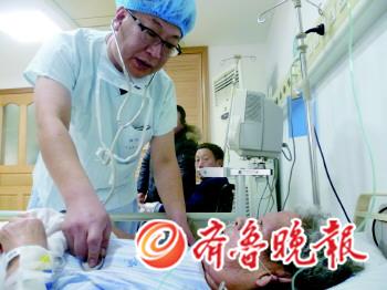 | 医生正在为术后老人做检查。 记者 宋佳 摄 |