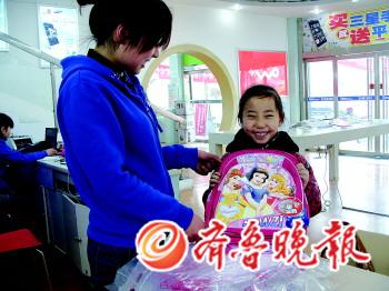 本报济宁2月24日讯(记者 范少伟) 本报21日刊发了《100个爱心书包等贫困学生来申领》的消息后,有11名学生拨打本报圆梦电话进行申请登记。23日,济宁城区的6名学生在“非常本本”三星旗舰店领取了新书包。部分县区报名申领书包的学生,本报将统一邮寄到你们手中。另外,剩余的89个新书包,将作为开学的礼物,送给留守儿童学校的学生们。 “阿姨,是不是在这领书包。昨天晚上,我兴奋地没有睡着觉。”23日上午9点左右,在建设北路“非常本本”三星旗舰店,8岁的李晓涵推开门微笑着问工作人员。 “她的书包用了两年了,上学期期末考试前说如果语数考双百,就奖励孩子一个书包,结果语文考了100,数学考了98分,就没给她买。”涵涵的妈妈薛孝文说,家庭条件不是很好,很少给孩子买新衣服新文具。但她从来不给别人攀比,性格活泼开朗,学习成绩也不错。 在报纸上看到可以申领“爱心书包”后,马上就报了名。没想到这么快就领到了书包,李晓涵高兴得手舞足蹈。 “阿姨给你背上吧,试试合不合适。”非常本本三星旗舰店店长张芳给她背上了粉红色的书包,并调试好肩带。 “谢谢你们,书包上面的仙子很漂亮,我很喜欢。”和妈妈一起来领书包的洋洋告诉记者,她7岁了,马上就开学,可以背着新书包上学了,特别开心。 随后,又有部分申领书包的孩子来到店里领取书包。本报提醒,部分县区报名申领书包的学生,本报将统一邮寄到你们手中。 另外,剩余的89个新书包,将作为开学的礼物,送给留守儿童学校的学生们。
