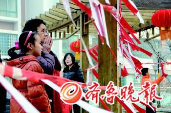 23日,潍坊市中学街社区在小区内挂上了一串串的灯谜,小区居民吃元宵、猜灯谜其乐融融。本报记者 孙国祥 摄影报道