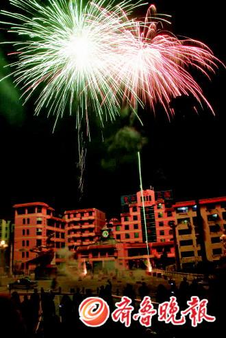 24日晚,竹岛办事处戚家夼居委会暨文笔峰集团举办了元宵节晚会,烟火表演给居民献上了一场视觉盛宴。 本报记者 王震 王帅 摄影报道