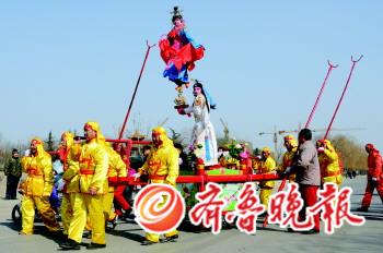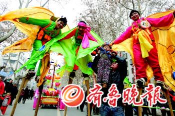 今年淄博停办元宵焰火晚会,但丰富多彩的民间艺术表演给市民献上了元宵节文化大餐,这个没有焰火的元宵节在同样热闹中多了些环保和节俭。 元宵节淄川区有包括13支表演方队在内的的33个民间“扮玩”节目走上街头,与市民共庆佳节。今年淄川取消了搭建观看台等环节,整个扮玩流程也有所简化,但这却丝毫没有影响表演的观赏价值,其中,有浓郁地方色彩的苏王舞龙、南佛大鼓、淄川芯子,也有由外省特色民俗演变的安塞腰鼓、贾官舞狮,有传统节目高跷、彩车、杂耍、秧歌,也增加了广场舞、蝴蝶舞等新舞种,其中更不乏省、市级非物质文化遗产类节目。苏王舞龙是市级非物质文化遗产,距今已有200多年的历史。舞龙队由3条巨龙组成,龙长20—30米,其中最长的为46米,有13套表演动作。 “要是看不到芯子表演,这一年春节就感觉跟白过了一样。”不少周村人都有这样感叹。周村人从高跷和蜡烛灯台得到启发,依靠周村发达的织机技术,创造了别具一格的周村芯子。82岁的王希同老人告诉记者,芯子表演的小演员身高要求在1.30米到1.35米之间,体重30公斤左右。据介绍,周村芯子是一个非常包容的艺术,也是不断发展的艺术。早期周村芯子以表演神话故事、古代传说为主,如《穆桂英挂帅》、《宝莲灯》等传统扮相。“今年我们新增加了《妈祖》的扮相。不断融入新的东西,才能保持芯子的新鲜性。”