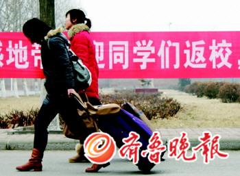 ◤寒假结束,大学生们返回学校,开始新学期。25日,德州学院的部分学生提前到校。 本报记者 常学艺 摄