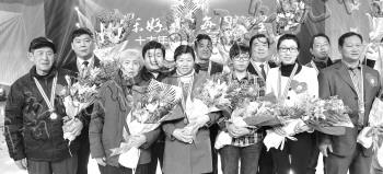 | 1日晚,10位“山东好人”在济南领奖。 本报记者 邱志强 摄 |