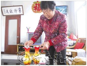 | 1974年王玉杰结婚时她的好朋友王久桂曾特意从淄博来到滨州为她祝福,并送来了一对花瓶。近40年来,这对花瓶王玉杰一直小心保存。 |