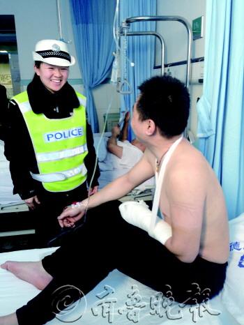 本报3月7日讯(记者 牟张涛 通讯员 杨红省) 被面条机挤了手,多根手指受伤,鲜血直流。在打车无望时,跑到警车面前求助。女交警开警车开辟救援通道,将其及时送到医院。 3月7日10时左右,交警支队直属一大队女民警梁军像往常一样在地毯厂路口执勤,一男一女从远处向她快速奔来,两人神情紧张,该男子说工作的时候他被面条机挤了手,需要抓紧赶往医院做手术。 说话期间男子的手不停地滴血,梁军一见情况紧急,抓紧让两人上自己执勤开的巡逻警车,开启车辆,打开警灯、警报,快速向人民医院驶去,梁军一边呼救其他车辆让行,一边用对讲机联系下一个途径的路口,呼喊民警快速疏导车辆。 16时许,记者在人民医院见到受伤男子叶长青,“当时打不上车,我看到远处有个警车,就想过去说好话帮忙搭下车,没想到警车直接开道给送到医院。”叶长青说。