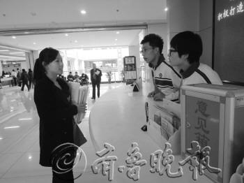 11日,在市政务服务中心内,德州学院的志愿者在总服务台及各楼层服务台上岗服务。参与服务的学生共有50名。
